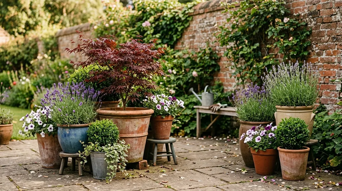 Best container gardening ideas for UK gardens, patios and balconies. Pot sizes, compost mixes, plant combinations and year-round displays from 10 years.