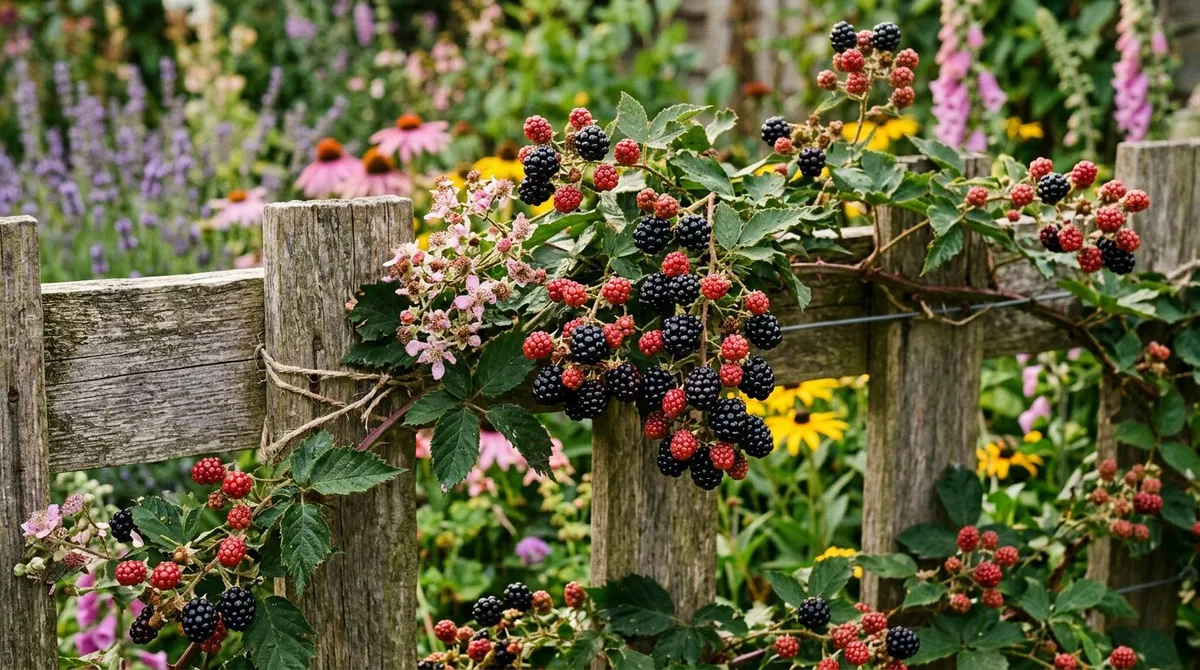 Learn how to grow blackberries in UK gardens. Covers thornless and thorned varieties, fan training, pruning fruited canes, and harvesting 5-10kg per plant.