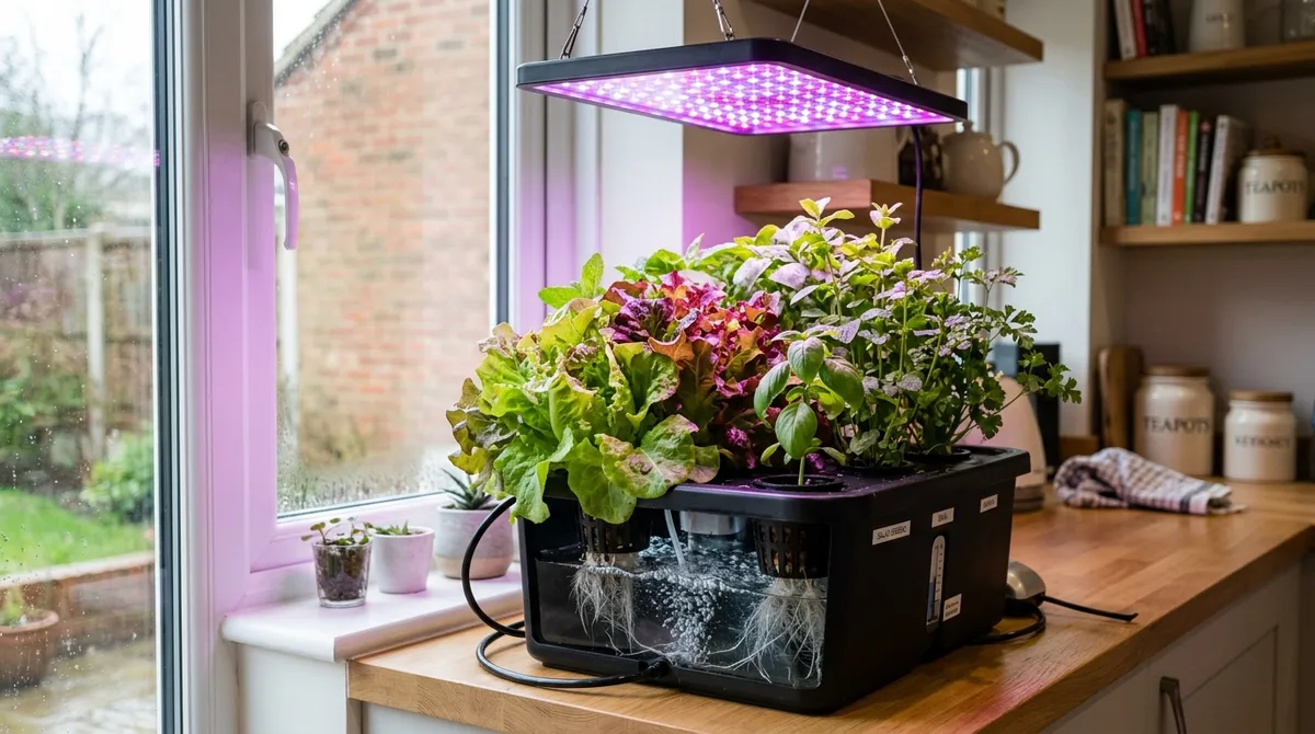 I have been running hydroponic systems in my garage and unheated greenhouse since 2023. Over three years and 12 crop varieties, I have tested DWC, wick, and NFT setups. This guide covers what actually works for UK beginners, not what looks good on YouTube. The climate, water chemistry and available kit in Britain are different from the US-focused guides that dominate search results.
