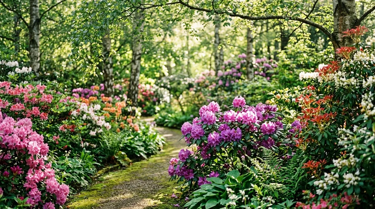 Rhododendrons are the signature acid soil plant. Over 1,000 species exist, from 15cm alpine dwarfs to 10m tree forms. In UK gardens, the most reliable include R. yakushimanum (compact, 1m, pink fading to white), R. augustinii (3m, lavender-blue), and R. luteum (deciduous azalea, 3m, yellow, heavily scented). All need pH 4.5-5.5 and dappled shade. Full sun scorches leaves. Heavy clay waterlogging kills roots within 18 months.