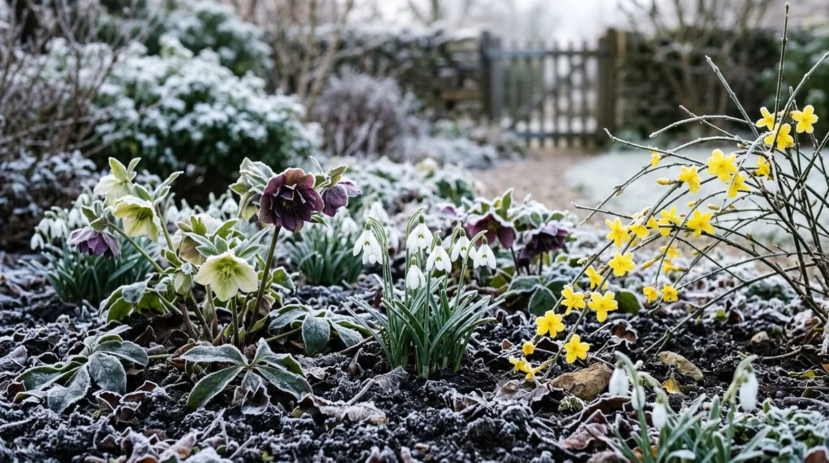 Ten best winter flowering plants for UK gardens from November to March. Covers hellebores, snowdrops, witch hazel, and winter jasmine with care advice.