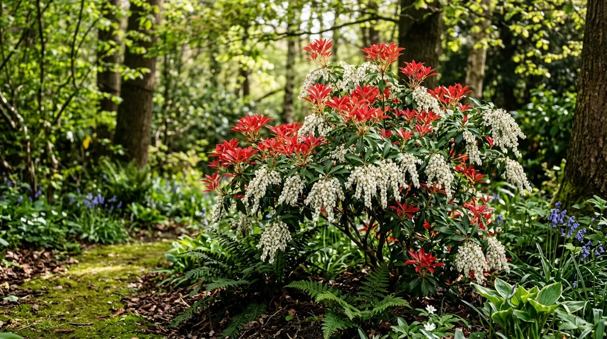 How to grow pieris in UK gardens with acid soil, ericaceous compost and shelter. Covers best varieties, container growing, pruning and seasonal care.