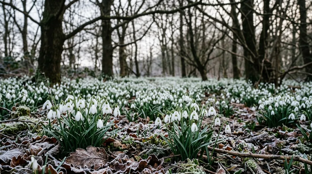 Snowdrops are native to woodland edges, riverbanks, and hedgerow bases across Central and Southern Europe, naturalised throughout Britain. They have evolved for a specific set of conditions: cool, moist soil, partial to full shade, and a rich supply of organic matter from leaf litter.