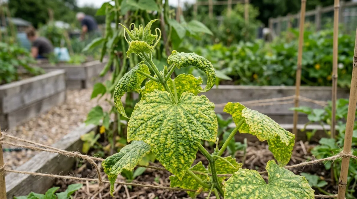 If you grow cucumbers alongside courgettes or tomatoes, a single infected plant can spread CMV across your entire vegetable plot within 2-3 weeks during peak aphid season (June-July).