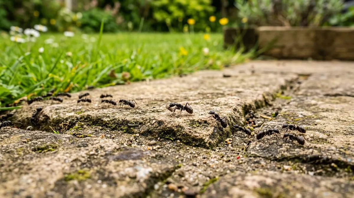 Ants love the warm, dry gaps beneath paving slabs. They excavate soil, creating voids that cause slabs to sink.